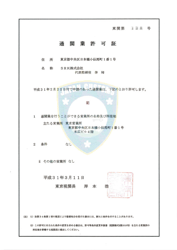 - 東京税関で「通関業」認可取得&通関業務開始